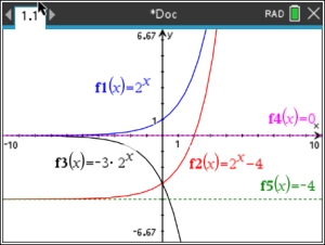 Note: The horizsontal asymptotes (f4 and f5) have been graphed separately.
