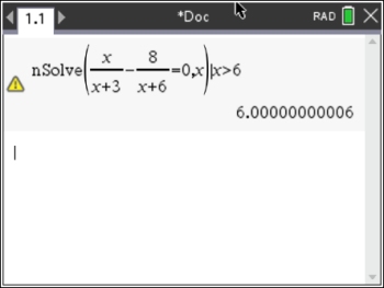 nSolve (x / (x + 3) - 8 / (x + 6) = 0, x) | x > 6