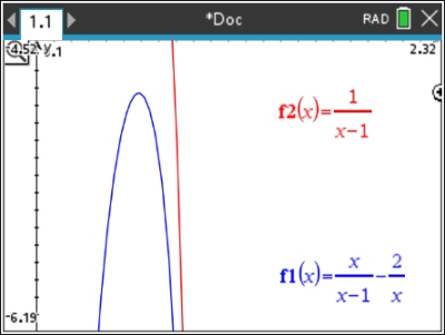The graphing calculator is a wonderful back-up checking tool to solving rational equations graphically.  This approach is especially helpful in determining extraneous roots.  Consider the examples below.