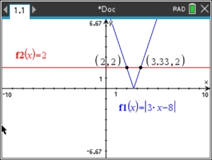 • Enter left side in f1(x).  Enter right side in f2(x).