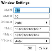 The Standard Window on the TI-Nspire CX II (shown at the right) is 20 units wide x 13.29 units high with a screen size of 320 by 240 pixels.